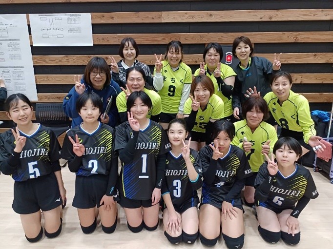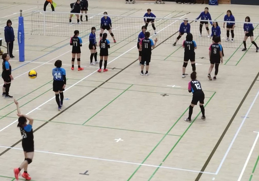 最初はブロックタッチ後の接触回数、ネットプレーなどに戸惑いを隠せなかった中学生も、順応が早く2試合目は違和感なく9人制の楽しさ・面白さを体感したものと思われます。またママさんも溌溂とした中学生のプレーに刺激を受けた様子でしたが、中でも親子で参加した塩尻木曽協会のMさんは、まさか娘と同じコートで一緒にプレーすることがあるなんて!と感激の様子でした。